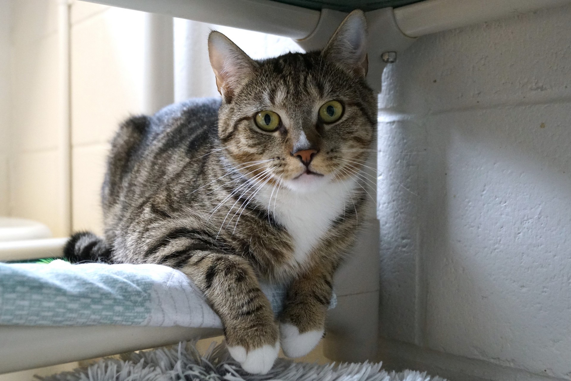 Elusive and majestic, Monarch is just over a year old and is not a fan of shelter life. She is however a fan of her hidey holes and she's definitely a fan of some catnip! She's all about the little joys in life. She coinhabits with other cats, but she couldn't care less what they're up to, as long as they give her her space. Monarch may not be the most open cat now, but given some time, some space and some quiet could maybe open up in a home. Monarch is spayed and up to date on her vaccines.