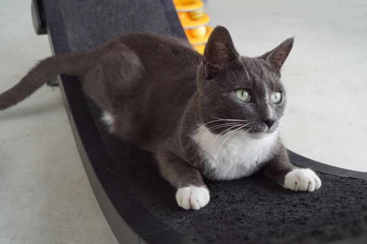 Larry is a cat who walks to his own beat. He's about a year old and gets along great with other cats. With people Larry takes some time to open up. at first he prefers to watch from the sidelines, on top of a cat tower or up in one of our wall mounted boxes. Given some time, some patience, and a little bit of catnip Larry finds the courage to open up. His true personality is very sweet, with a dainty meow to match. Larry would make an excellent addition to a multicat home, with people ready to accept him quirks and all!