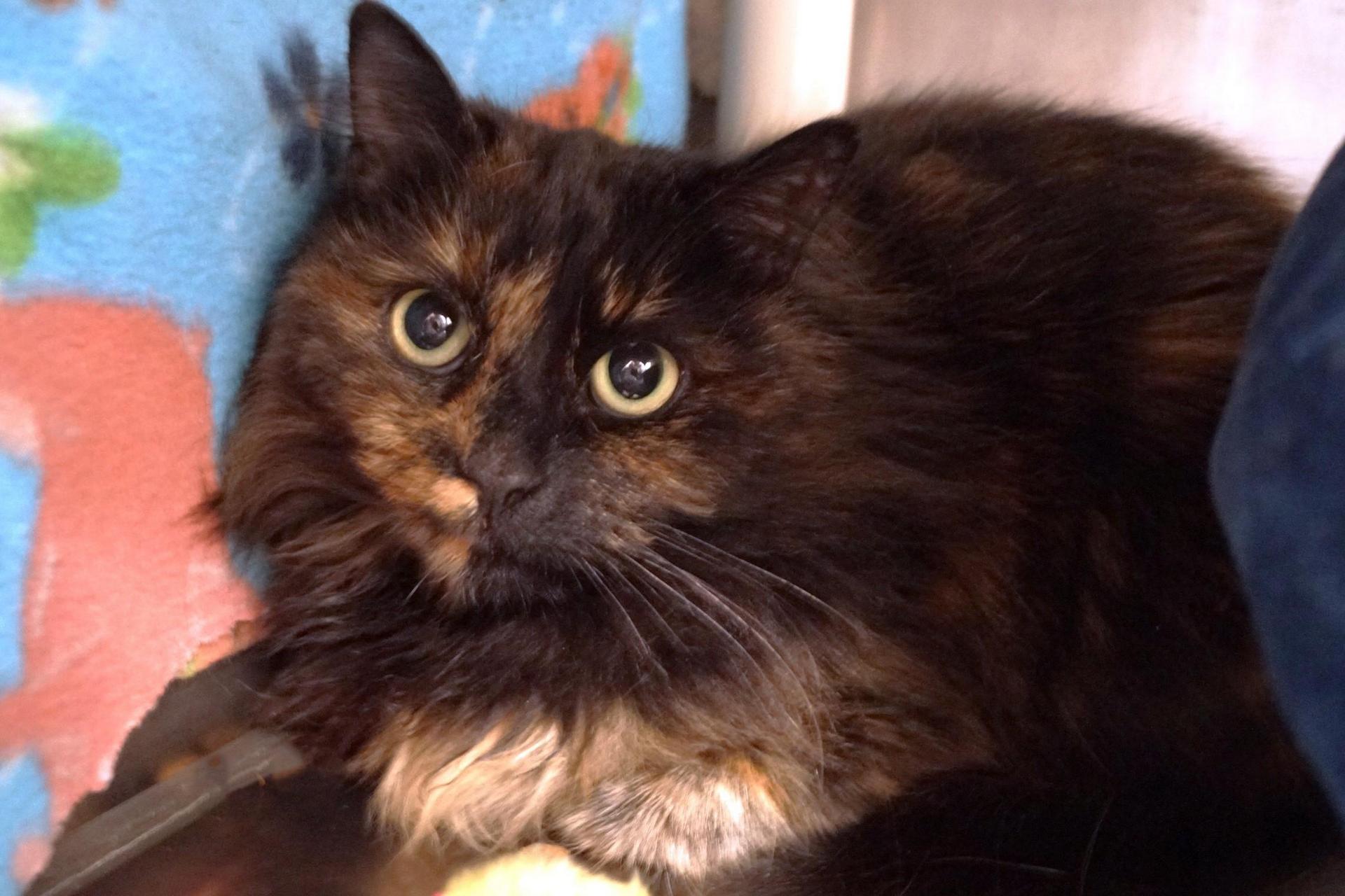 Sugar Plum is a 2 yr old, long haired tortie. She is spayed up to date on vaccines. She was found as a local stray.