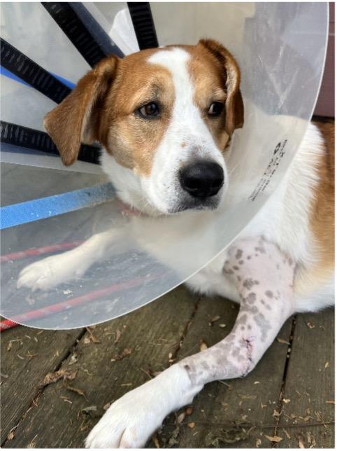 rescued from a high-kill shelter in Kentucky, suffering from a painful